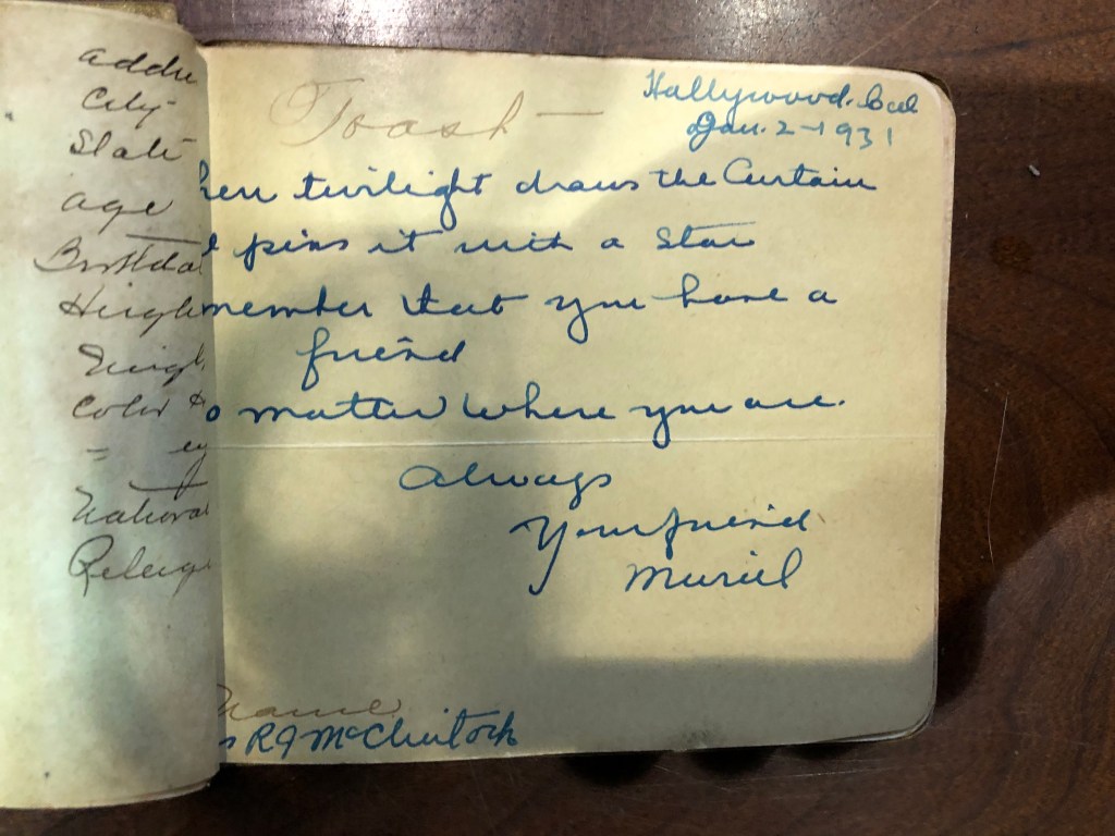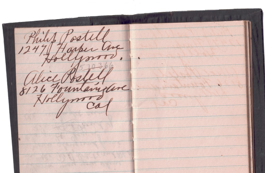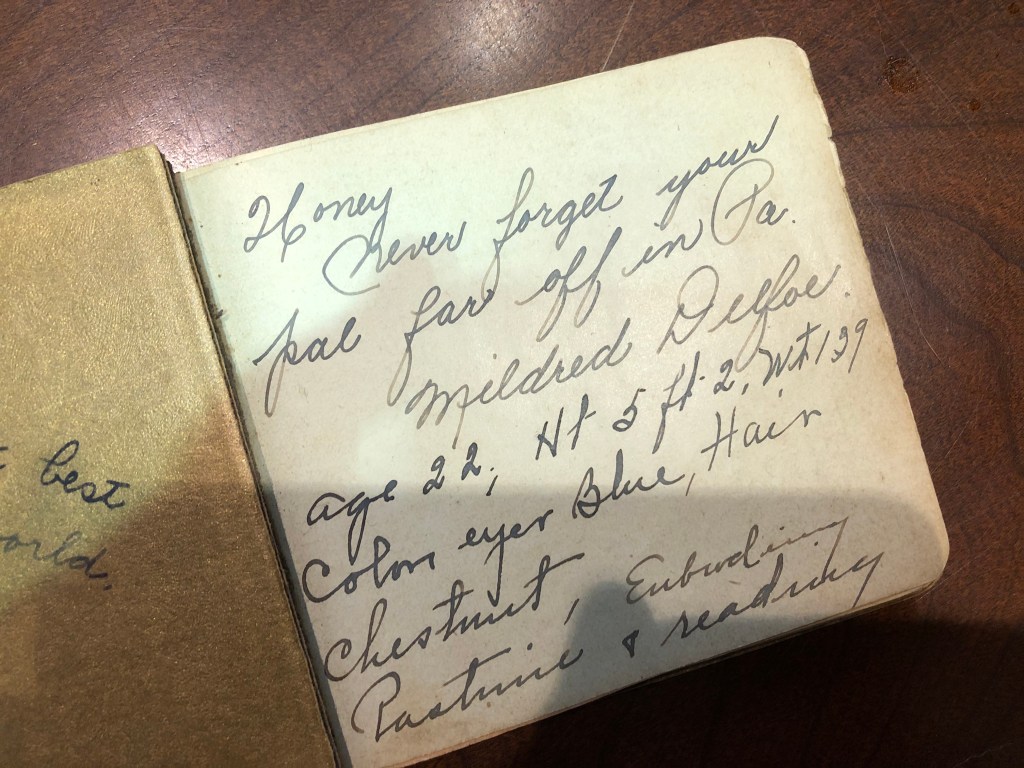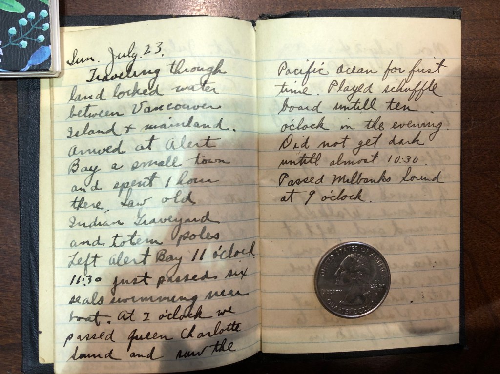 “Bert” Nadler, of Plaquemine, LA, also had a dual purpose for his book. It acted as a diary, documenting his 1916 trip to Alaska with his mother when he was eleven years old. But, it also includes addresses of people he met along the way.