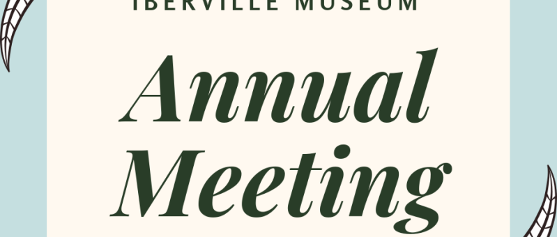 Iberville Museum’s Annual Meeting will be held Tuesday, June 11, 2019 at 6:00 P.M. at the museum. This event is free and open to the public.